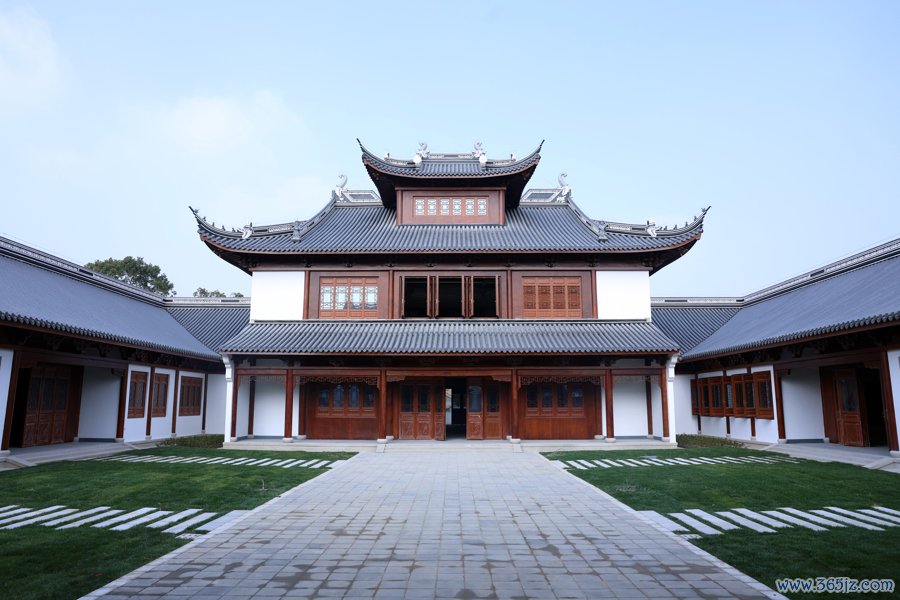 外立面遴荐白墙、仿古木门窗、木檐装修搭配小青瓦等材料,体现了浓郁的江南建筑立场。建筑整身形度古朴大气,与邻近的华亭古海塘等历史功绩形成雅致呼应,江南文化立场浓郁。